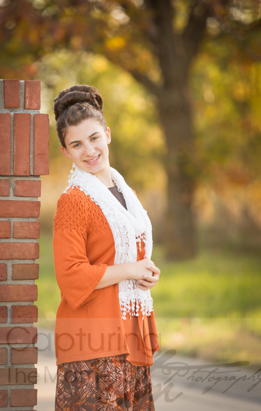 We stopped at several spots in Junction City to photograph Marjorie for her high school senior autumn session. When we stopped at the 4H Building so she could change, I noticed some pretty leaves on the ground, and the pose of her against the tree with the pretty leave background is her favorite from the session. Marjorie, you are such a joy to photograph. We are so looking forward to your studio session! Included are my favorites from her session. All of her images from her last two sessions can be viewed here. Enjoy!